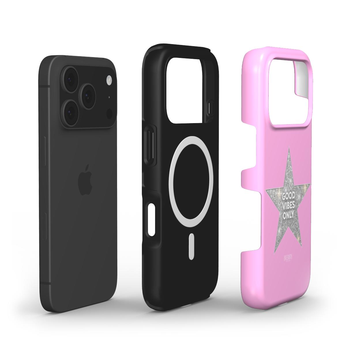 Good vibes only is that 2016 feeling you never quite let go of. Pink gradient, a raw glitter star and the iconic text that makes your iPhone a small statement piece, without it being too much. It's the mobile cover for you who live for bright evenings, high spirits and that carefree Cali daydream vibe, where everything feels a little lighter. From Berry Denmark you get an iPhone cover that both looks great in photos and protects your phone in everyday life, so you can take the vibe with you everywhere.
