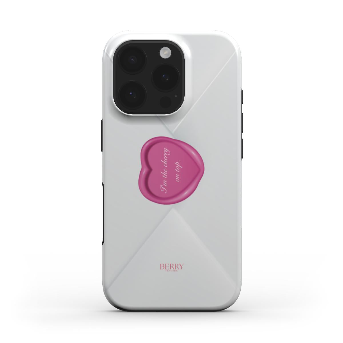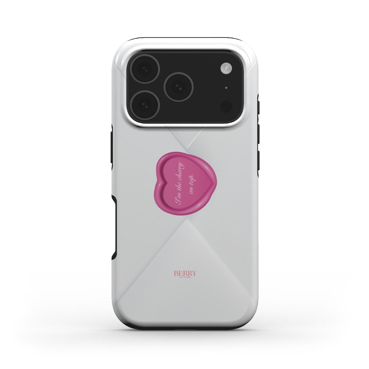 The Cherry On Top cover and case is pure main character energy. The light base feels like a perfectly folded love letter, and the glossy pink heart in the middle says it all without you having to explain yourself. âI'm the cherry on topâ is that little phrase that makes the look dangerously cute, like you're just gliding by and leaving an impression. A cover and case for your phone that goes with everything, but still feels like a statement, because you're not here to be neutral.
